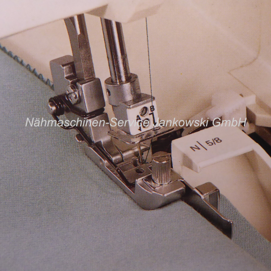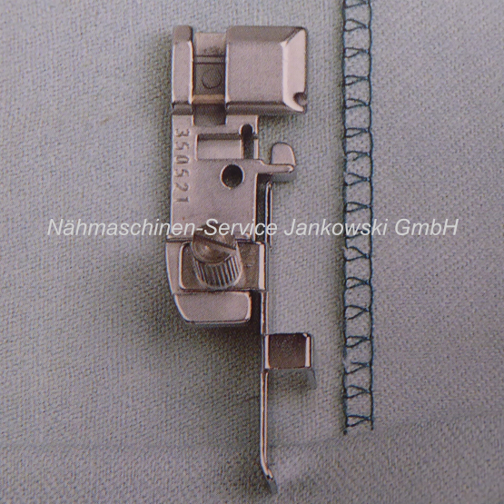 Dieser Fuß eignet sich zum Annähen von Armbündchen sowie für Rock und Hosensäume, bei denen die Naht unsichtbar bleiben soll.